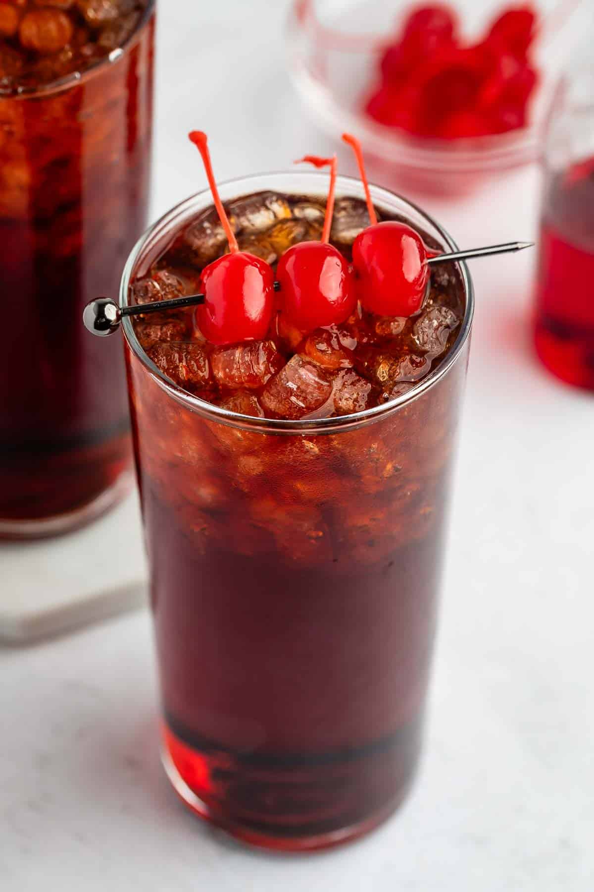 - Then, as with any good cherry soda drink, garnish with a maraschino cherry (or 3!)